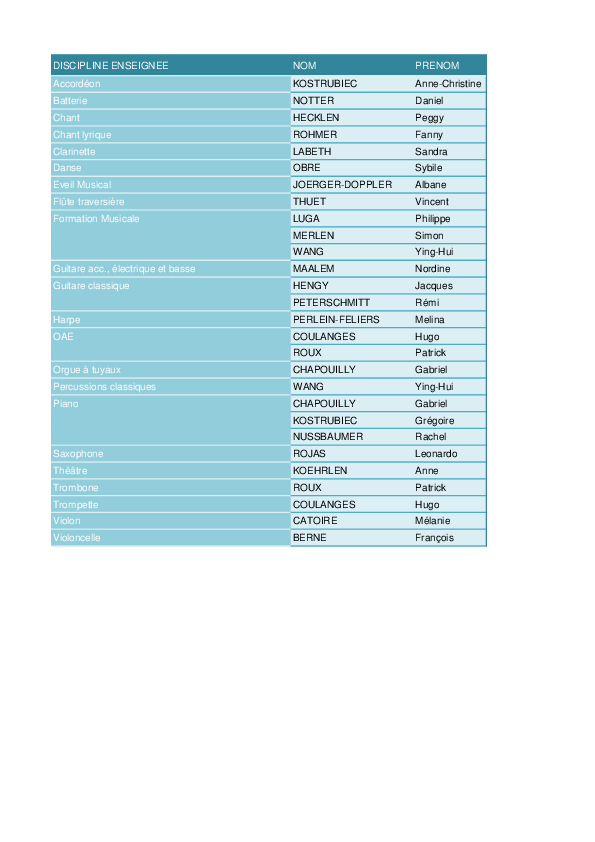 LISTE DES PROFESSEURS